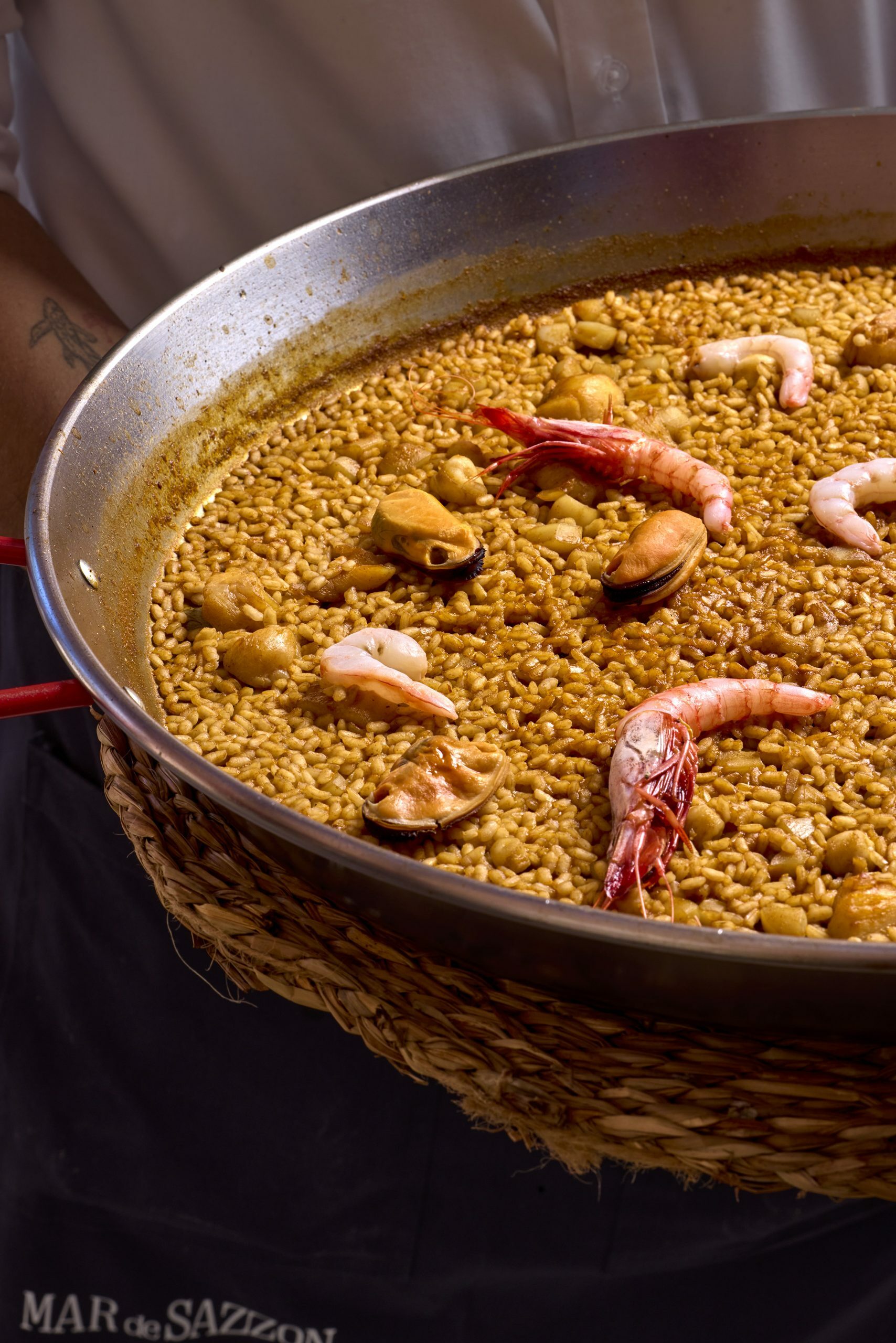 Una experiencia más relajada pero igualmente sabrosa, donde las elaboraciones se comparten, como las paellas o la lonja del dia, los vinos, los finos y los rebujitos se disfrutan en un ambiente vibrante y social.